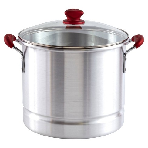 Imusa 32qt Aluminum Tamale Seafood Steamer With Ruby Red Handles Glass Lid Target