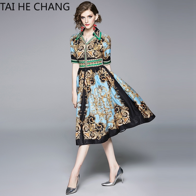 Dress Wanita New Retro Vintage Formal Party A Line Print Work Office Casual Midi Long Dress Shopee Indonesia