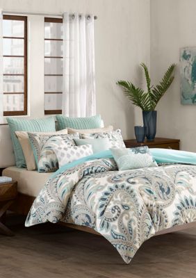 INK IVY Mira 3-piece Comforter Set by INK IVY. This unique paisley design showcases shades of blue and taupe printed on 200 thread count cotton with a textured background for an eye-catching addition to any bedroom in your home.