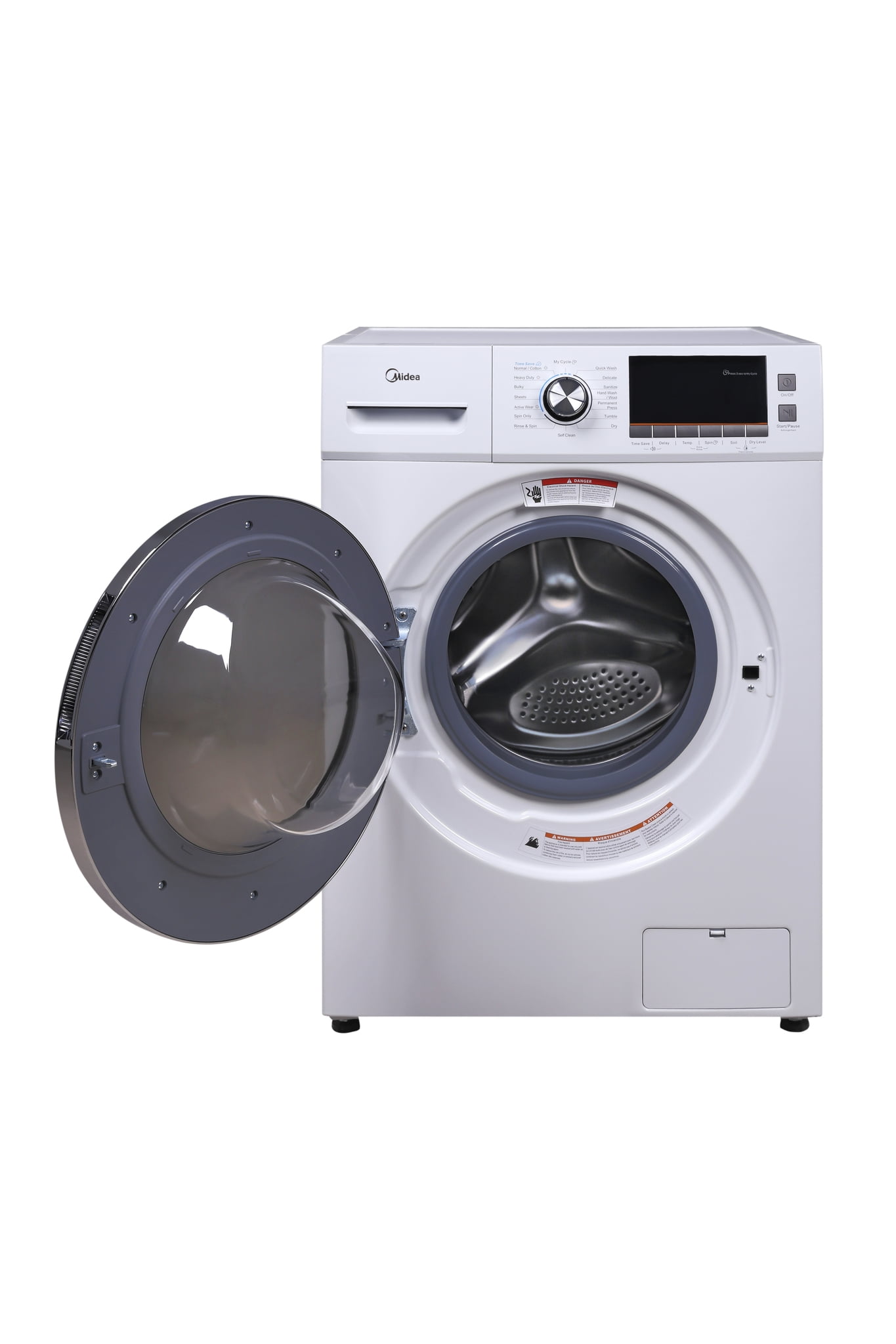Its features include a stainless steel drum with multiple cycles hot and cold water. Midea Washers and Dryers. The CWD1510W is ideal for homes that lack the proper ventilation.